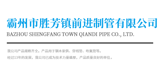 Bazhou Shengfang Town Qiandi Pipe Co., Ltd. 霸州市勝芳鎮(zhèn)前進(jìn)制管有限公司位于河北霸州市勝芳鎮(zhèn)開發(fā)區(qū),地處京、津、保三大城市中心地帶。北距北京120公里,東距天津45公里,西有京九鐵路,北有津保高速公路貫通。